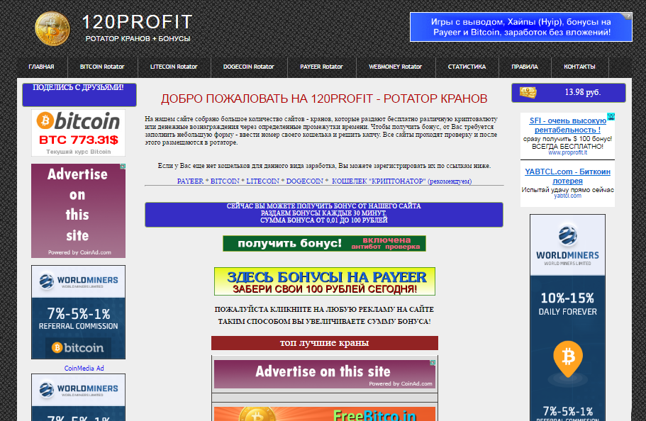 Скрипт сайта раздачи бонусов + ротатор кранов
